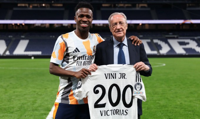 在西甲第32轮比赛中,皇家马德里对阵毕尔巴鄂竞技。维尼修斯的名字再次成为全场焦点,因为他在这场比赛中取得了皇马生涯的第200场胜利,这是一个令人瞩目的里程碑。这让维尼修斯感到非常开心和自豪,也对未来充满期待。